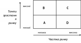 2) “зірки” – високі інвестиції в них принесуть значні дивіденди і у перспективі вони перейдуть в D, коли дозріє їх ринок та впадуть темпи зростання