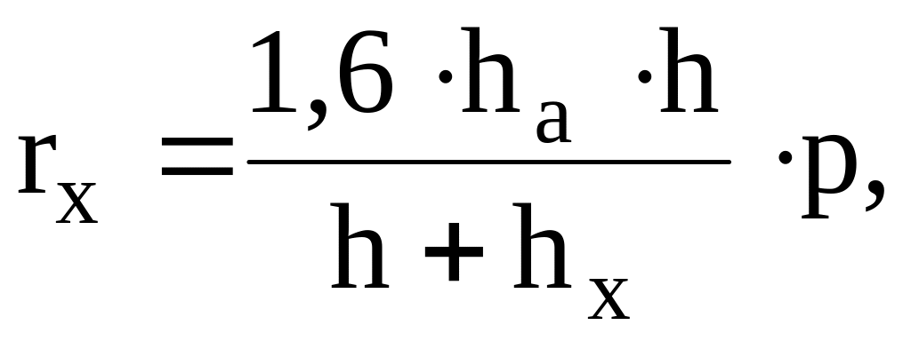 Радиус зоны защиты одиночного стержневого молниеотвода (рис. 2.1) на высоте для молниеотводов высотой до 60 м определяется по формуле [9]