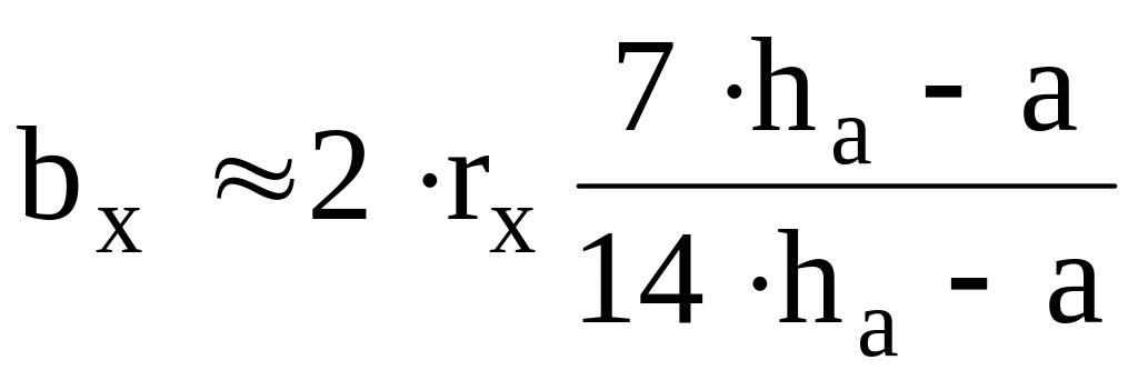 Зона защиты трех и более молниеотводов значительно превышает сумму защиты одиночных молниеотводов. На рис. 5.6 показана зона защиты трех молниеотводов в горизонтальном сечении на уровне . Радиус внешней зоны защиты для каждого молниеотвода определяется так же, как и для одиночного молниеотвода по формуле (2.1). Ширина внешней зоны защиты для каждых двух молниеотводов определяется по формуле (2.2).