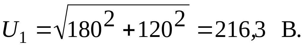 = R + C1 + C2 + L = 150 + j120-300 + 60 = -90 + j120 В.