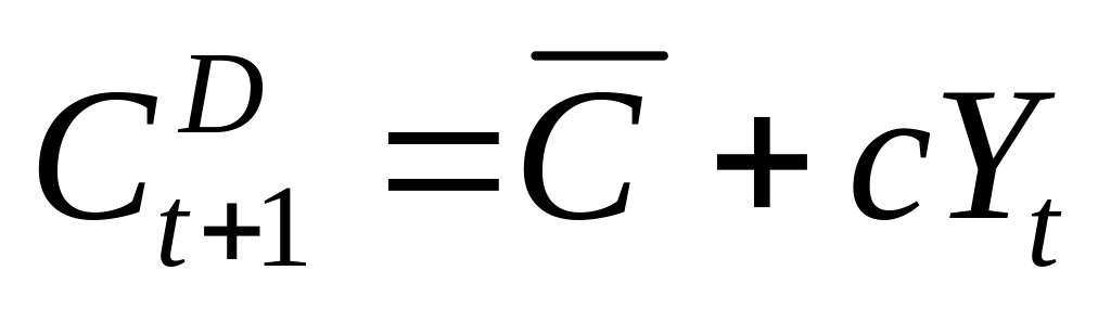 Передбачається, що попит на інвестиційні товари постійний, а попит на споживчі товари в наступному році є лінійною функцією від ВВП поточного року: