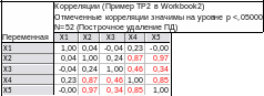 В результате получаем таблицу, в которой указаны частные коэффициенты корреляции между двумя выбранными переменными (X1 и X2).