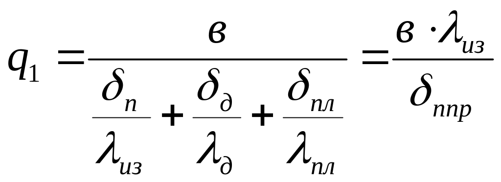 По формулам (11) и (12) определяем средний коэффициент теплопередачи для всей конструкции, определив предварительно по формуле(1) коэффициент теплопередачи для основной изоляции.