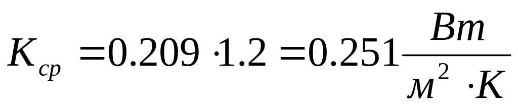 Полученный коэффициент теплопередачи увеличиваем на 20% для учета влияния мелких крепежных деталей: