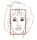 Рекомендуется пышная и низкая, до бровей и даже ниже челка, ступенчатая стрижка. Не следует носить длинные прямые волосы без челки и прямой пробор.