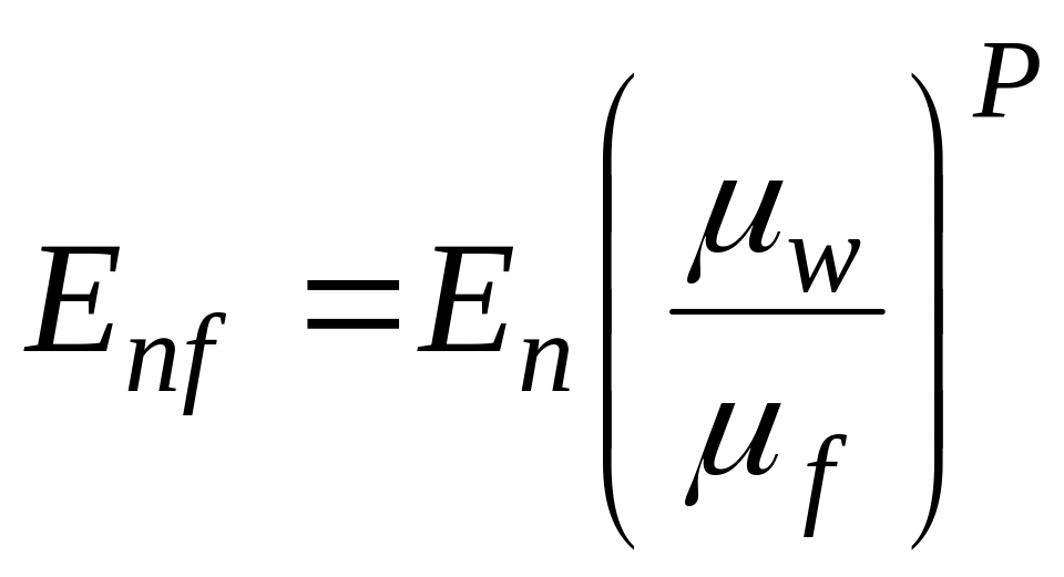 En – число Эйлера в изотермических условиях; μw, μf – динамический коэффициент вязкости жидкости при температуре стенки и потока соответственно. Показатель Р при μw/μf определяется по табл. 15.