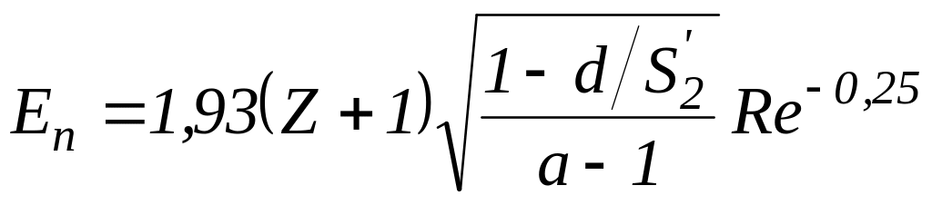 В этих уравнениях a = S1/d и b = S2/d – относительный поперечный и продольный шаги в коридорных пучках. В формулах (145) – (148) число Эйлера
