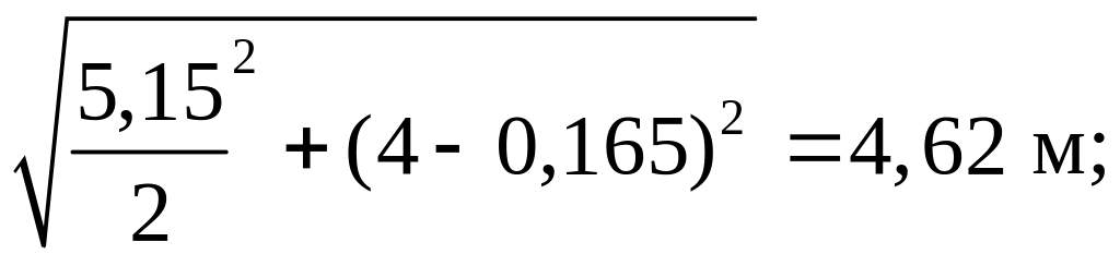 1 = 4,46 м, 2 = 4,965 м, 3 = 2,575 м.