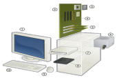 Дербес компьютердің құрылымдық заттары:1 — Монитор, 2 — Материнская плата, 3 — Орталық процессор, 4 — Оперативная память, 5 — Карты расширений, 6 — Блок питания, 7 —Оптический привод, 8 — қатты диск, 9 —Компьютерлік тышқан, 10 — Клавиатура