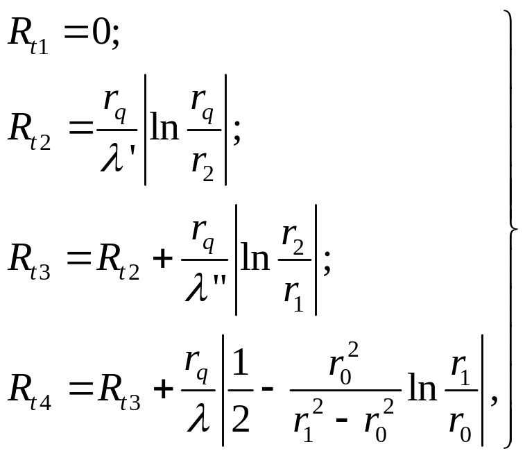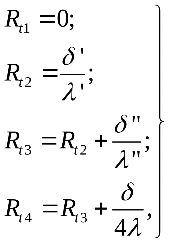 Соответствующие этим точкам термические сопротивления выражаются формулами: