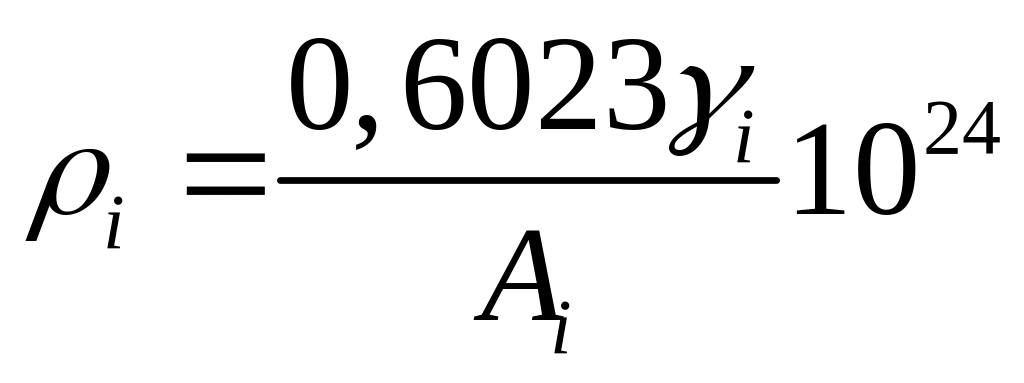 Ядерную концентрацию веществ, отнесенную к 1 см3 блока, вычисляют по формуле