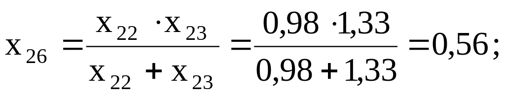 Упрощаем схему до вида рис. 16. На рис. 16: x36 = x30+ x35=0,478+0,786=1,264.