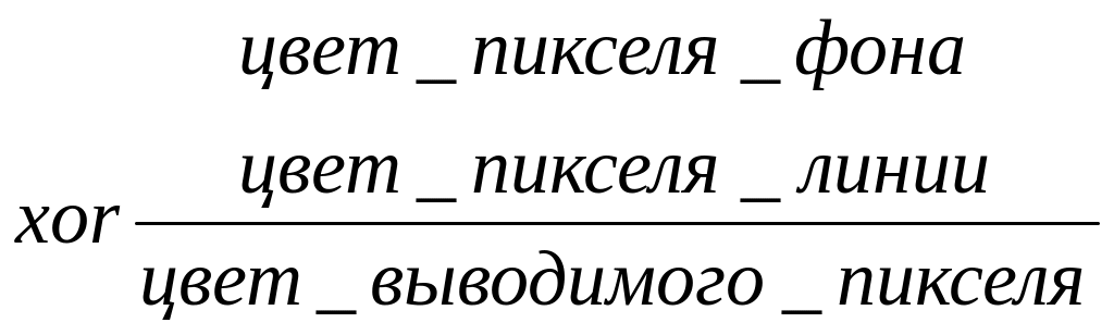 Предположим, цвет пикселя фона задан битовой комбинацией 1111, а цвет линии- 0101, тогда цвет выводимого пикселя определиться как