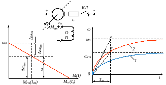 Рисунок 4.1 – Схема включения и механическая характеристика при пуске двигателя с независимым возбуждением в переходном режиме