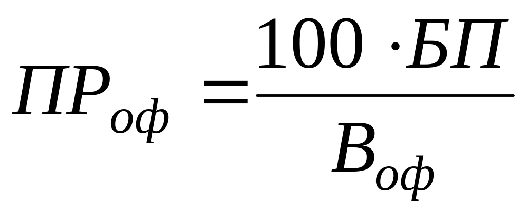 Відношення добутку 100% та балансового прибутку (БП) до середньої вартості основних фондів підприємства (Воф), відсотків (обсяг прибутку на одиницю основних фондів) |