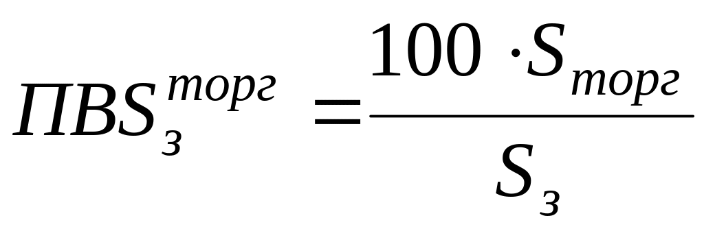 Відношення добутку 100% та торговельної площі (Sторг) до загальної площі магазину (Sз), відсотків |