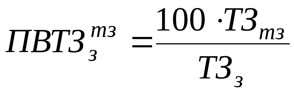 Відношення добутку 100% та середньорічних товарних запасів, що розміщуються у торговельній залі (ТЗтз), до загальної їх суми (ТЗз), відсотків |