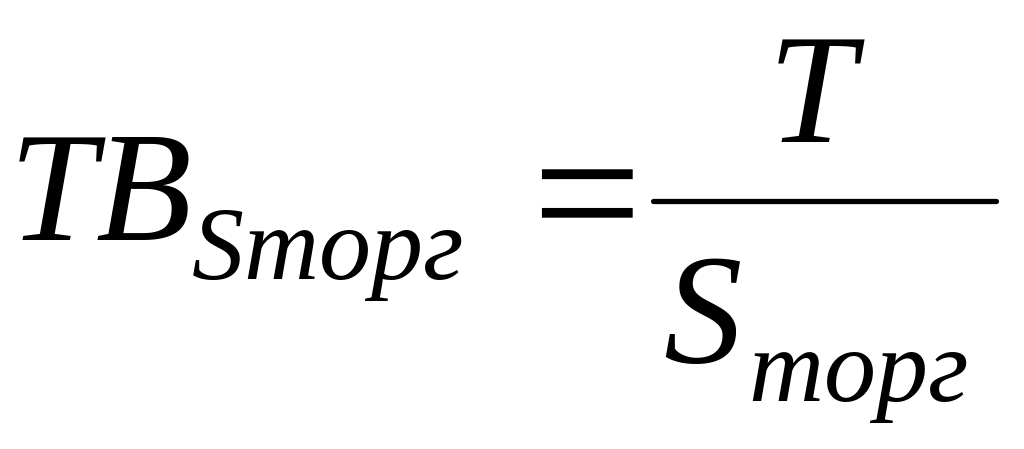 Частка від ділення обсягу товарообороту (Т) на торговельну площу магазину (Sторг), грн/м2 |