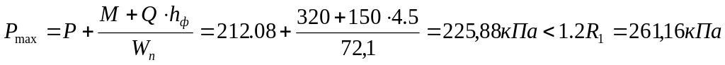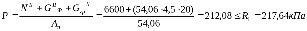 5. Проверяем фактическое давления под подошвой сконструированного фундамента и сравниваем его с расчётным сопротивлением: