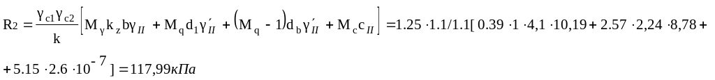 CII - расчетное значение удельного сцепления грунта, залегающего непосредственно под подошвой фундамента, кПа;