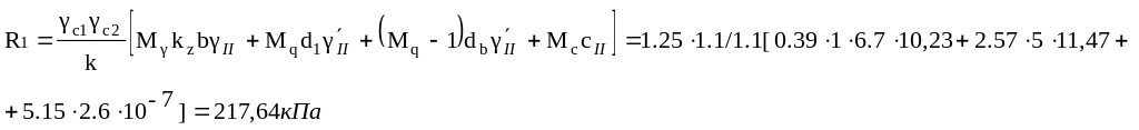 3. При полученной ширине b1 определяем расчётное сопротивление грунта