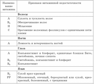 По медицинским источникам я составил таблицу (табл. 1), указывающую, по каким симптомам можно определить, какого витамина (витаминов) не хватает.