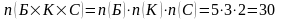 1. Если на первом месте стоит любая цифра из множества , кроме 0, то имеем три декартовых произведения вида: