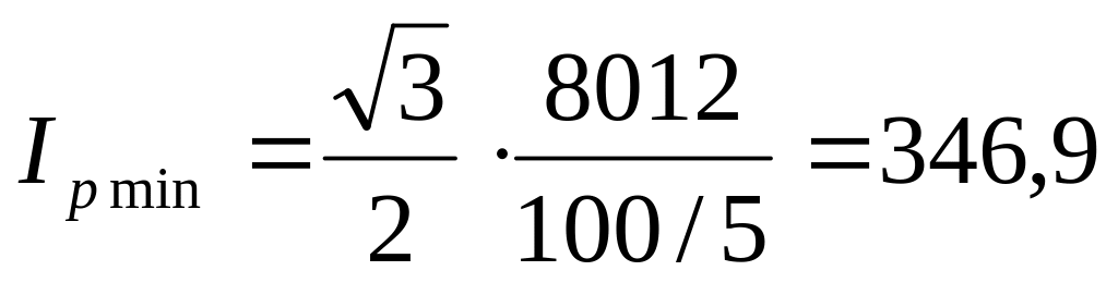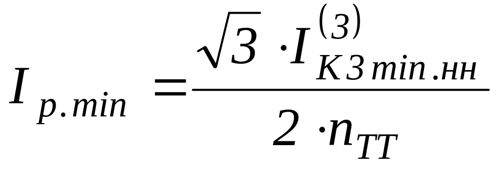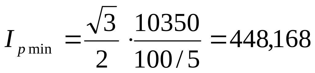 Минимальный ток в реле при двухфазном КЗ за кабелем: