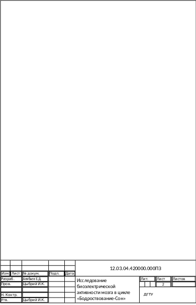 Целью исследование является построение математических моделей по исходным данным и последующей обработки данных для выявления наиболее информативного отведения в цикле «бодрствование - сон». И сопоставление с литературными данными . В ходе курсовой работы студент должен :