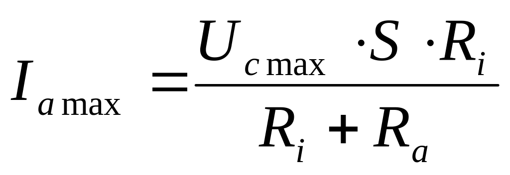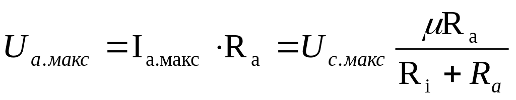 Отже, анодний струм зменшиться на зазначену величину і амплітуда змінної складової анодного струму Іа макс буде описуватися таким рівнянням: