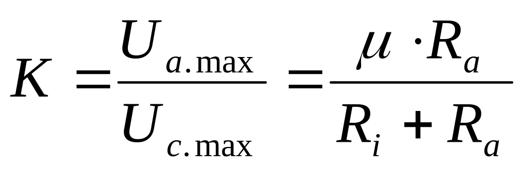 А коефіцієнт підсилення ступеня, тобто відношення підсиленої напруги до напруги на сітці: