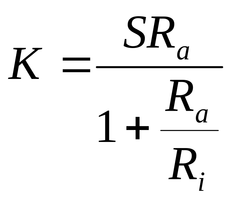 Коефіцієнт підсилення реостатного підсилювача визначається формулою (виведеною у § 41):