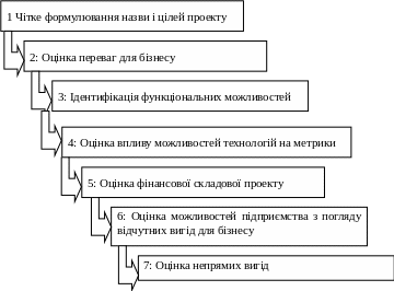 Крок 2: Оцінка переваг для бізнесу, які визначаються відповідно до деякої моделі показників, моделі показників ефективності бізнесу (Business Performance Framework).