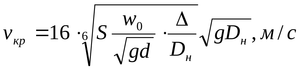 а) вычисляем для трех значений относительной плотности смеси = 1,1; 1,2; 1,3 значения критической скорости гидросмеси