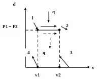 На графике процесса (см. рис.) работа деформирования газа lд соответствует площади S1-2-3-4-1. При прямом процессе 1-2, когда v2 > v1, тепло поступает в газ, он нагревается и, соответственно, lд > 0. При обратном процессе 2-1, когда v2 < v1, тепло уходит из газа, он охлаждается и в этом случае lд < 0.