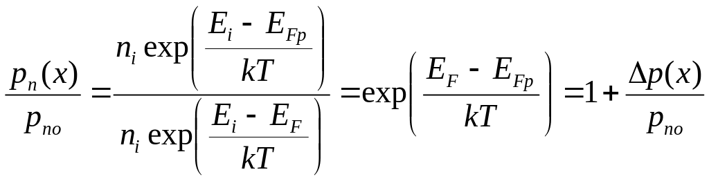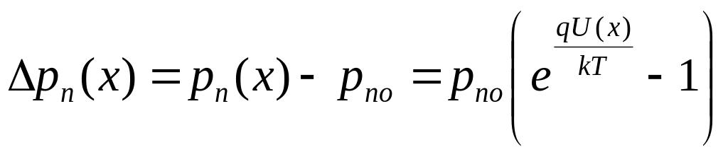 Перед під'єднанням зовнішньої напруги до р – n-переходу рівноважна концентрація неосновних носіїв заряду в n-області дорівнює pno, а після подання напруги буде pn(х):
