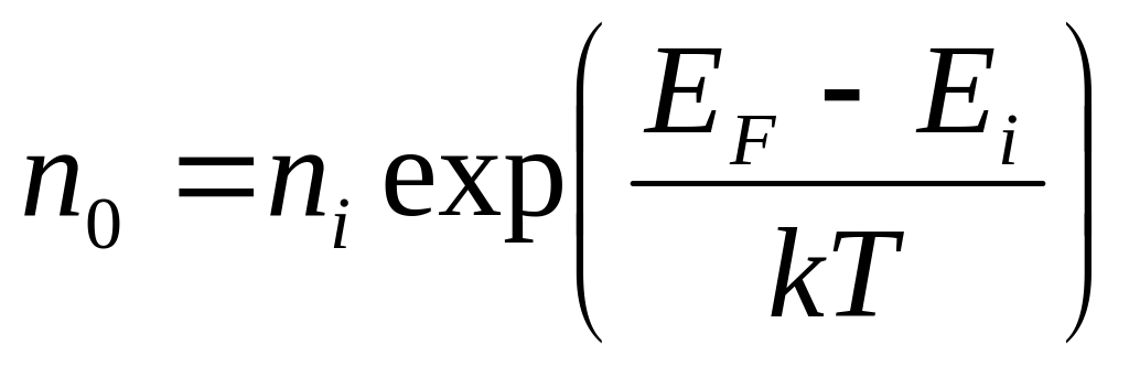 де Ei – рівень середини забороненої зони, Ер – рівень Фермі в напівпровіднику.