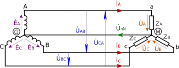 Схемы соединений трехфазных цепей[править | править вики-текст]
