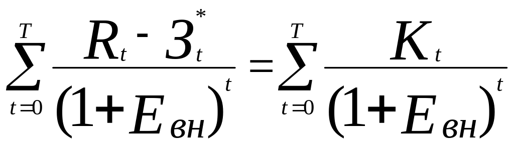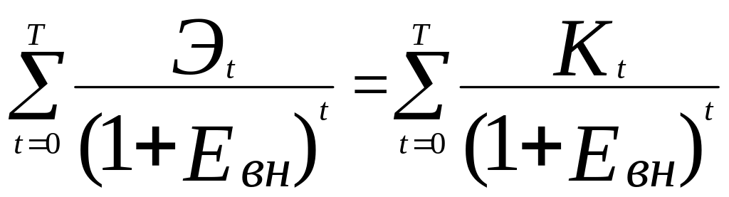 Внутренняя норма доходности (ВНД) представляет норму дисконта (Евн), при которой величина приведенных эффектов равна приведенным капитальным вложениям. Евн определяется решением уравнения