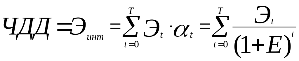 Чистый дисконтированный доход (ЧДД) или интегральный эффект (Эинт) представляет сумму текущих (годовых) эффектов за расчётный период, приведенных к начальному шагу (году):