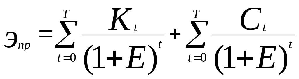 Эффективный вариант соответствует минимуму . Формулы (1.8) и (1.9) используются, если по годам периода сравнения меняются капитальные и эксплуатационные расходы, либо они разновременные (в этом случае соизмерение показателей осуществляется путём их дисконтирования через коэффициент приведения ).
