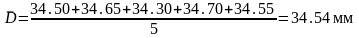 Пример. Пусть измеряется диаметр цилиндрического стержня с помощью штангенциркуля и делается 5 измерений: 34.50 мм, 34.65 мм, 34.30 мм,