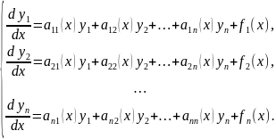 Линейной неоднородной системой дифференциальных уравнений называется система вида