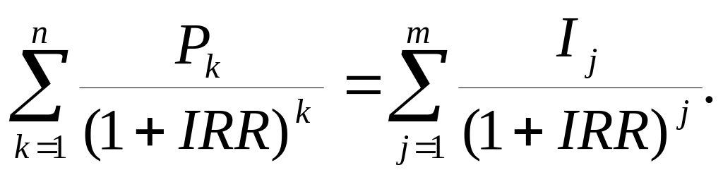Іноді цю ставку називають бар’єрним коефіцієнтом. Вона відображає значення дисконтної ставки, при якому NPV = 0, або досягається рівність між теперішньою вартістю доходів та дисконтованою (теперішньою) вартістю інвестованих коштів, або рівність дисконтованих грошових надходжень і дисконтованого відтоку грошових коштів.
