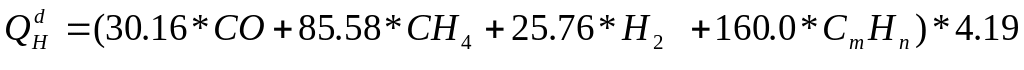 Где CO , CmHn и т.д. – содержание компонентов в объемных процентах