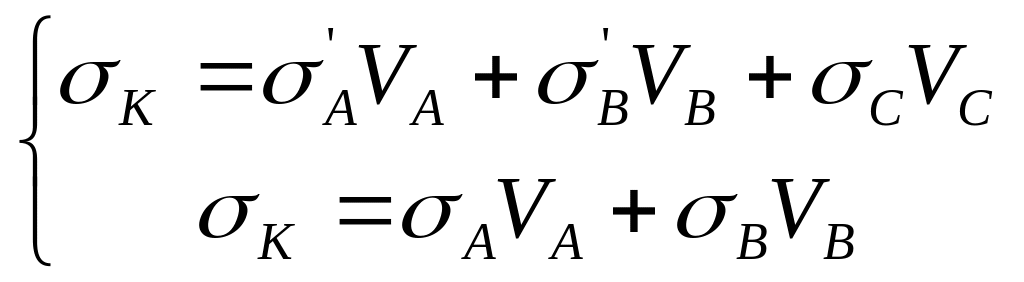 гдеσА и σВ – прочности составляющих А и В, VA и VB – их объемные доли