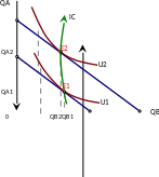 Соединив все точки равновесия, получим кривую, которая носит название «доход-потребление» (IC) или линию уровня жизни. Она показывает путь к оптимальному выбору рационального потребителя при изменении его дохода.