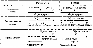 - •Направление изменений эффектов дохода и замены для разных типов товаров