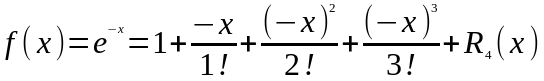 Заметим, что числа n могут выбираться различными, в зависимости и от наличия у функции производных соответствующего порядка, и от необходимой точности расчетов. Например, формула Тейлора для n=4 будет иметь вид:
