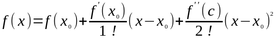 Разложим функцию в окрестности точки x0 по формуле Тейлора, причем возьмем два члена разложения и остаточный член: